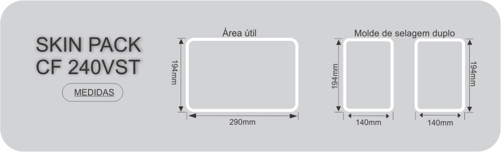 A Cavidade das SKIN PACK’s permite o uso de moldes para uma ou mais bandejas, respeitando os limites das medidas de cada modelo.